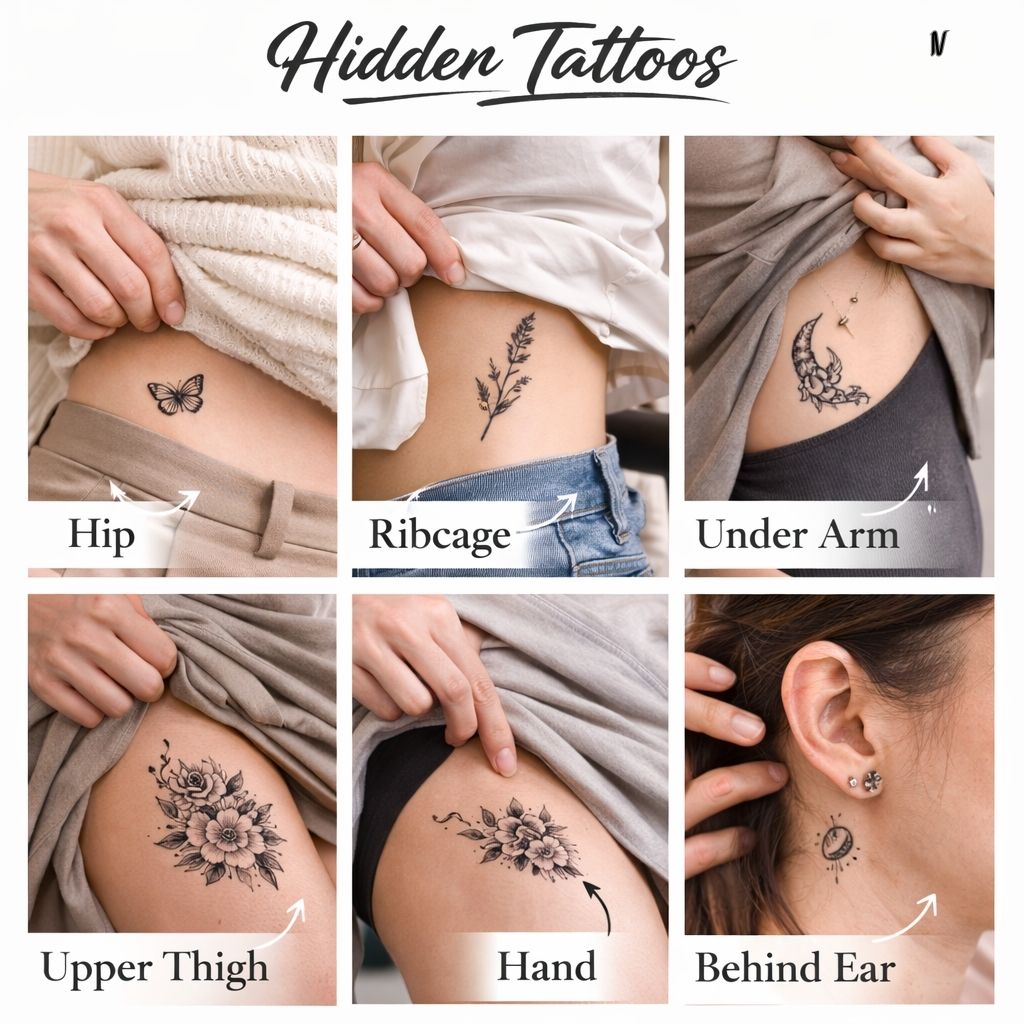 Hidden tattoos are placed in areas of the body that are typically covered by clothing, such as the back, ribs, thighs, or underarms. These tattoos are more personal and often reserved for the wearer and a select few people.